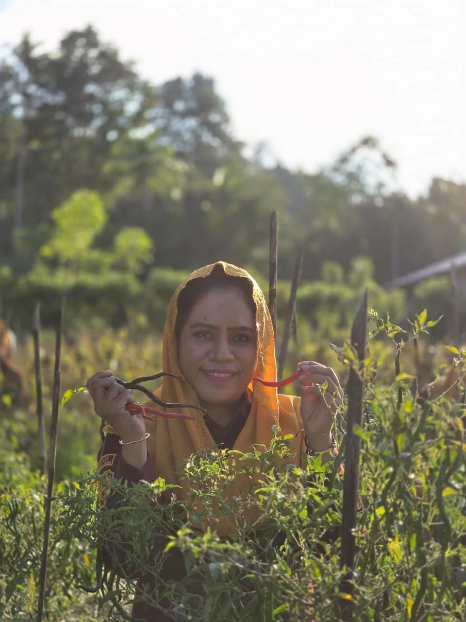 SANANA,SP-Bupati kabupaten Kepulauan Sula Fifian Adeningsi Mus (FAM) dan Wakil bupati M. Saleh Marasabessy melakukan peninjauan terhadap aktivitas petani Holtikultura sekaligus panen tomat di kebun kelompok tani Wai Balanda, Desa Waibau Kamis (16/10/2025).