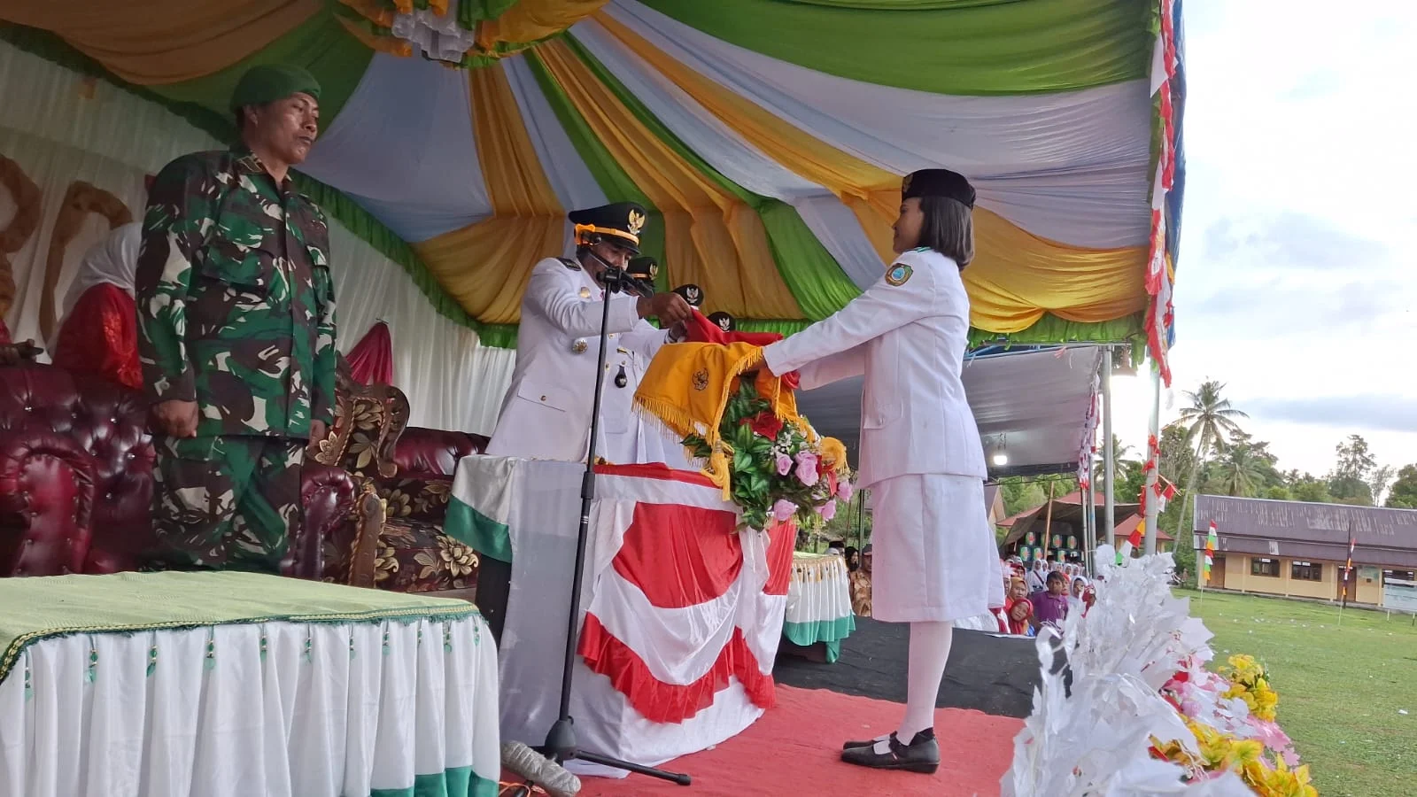 Safa samak lahir didesa ona asal sekolah SMA Negeri 10 kecamatan Sulabesi Barat bertindak sebagai pembawa baki Bendera Merah Putih,anak dari Tamrin samak itu ditemani Andas Umamit Lahir didesa ona asal sekolah SMA Negeri 10 bertindak sebagai komandan paskibraka, Suwandi Banapon Lahir didesa Nahi,asal sekolah SMA Negeri 13 komandan barisan, Haryono Tidore lahir didesa ona asal sekolah SMA Negeri 10 bertindak sebagai penggerek.Sementara Melati umafagur dari Desa Nahi asal sekolah SMA Negeri 13 sebagai pembawa baki saat upacara penurunan sang saka merah putih.